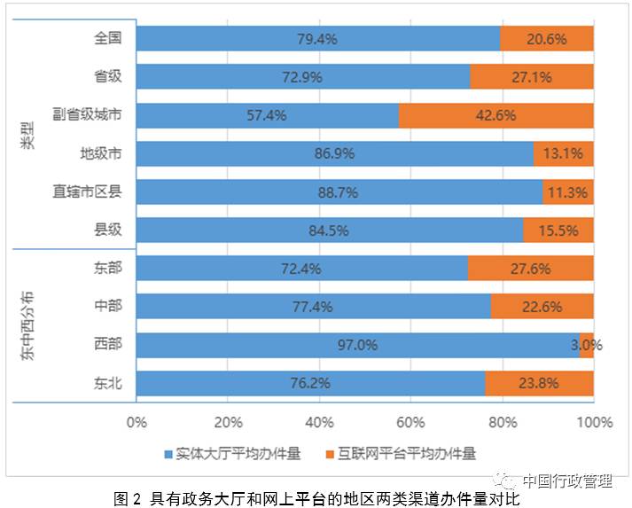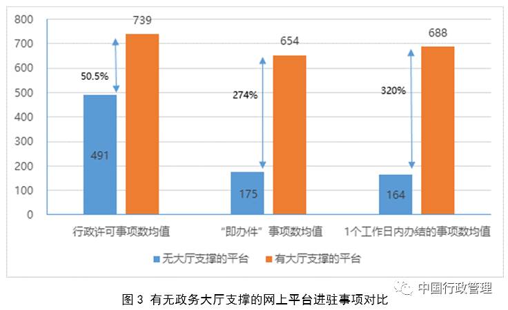 政务大厅是“互联网+政务服务”的线下支撑。近年来,各地各部门按照统一要求,大力推行“互联网+政务服务”,取得明显成效,浙江、广东、贵州、江苏等地己经建成覆盖省市县各级的统一互联网政务服务平台。从各地推行“互联网+政务服务”的情况看,凡是线下实体政务大厅与网上办事平台实现一套系统办事、一体化运行的,均取得了较好实际效果。如,江苏省升级改造各级政务大厅,推行“不见面”审批,对省市县三级5300余个政府机构的66万多项行政权力事项和公共服务事项进行统一管理、动态更新,打造纵横全覆盖、事项全口径、内容全方位、服务全渠道的网上网下一体化政务服务平台。以地级市网上办事平台为例,有政务大厅支撑的平台,可受理的行政许可事项比没有政务大厅支撑的平台多50.5%,其中,能够即时办结的事项(又称“即办件”)数比没有政务大厅支撑的多274%,能在1个工作日内办结的事项数比没有政务大厅支撑的多320%,平均预约量多26%。