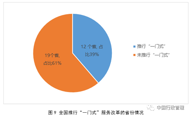 推行“一门式”服务改革。为杜绝“无故不受理”、“两头受理”、“超时办理”等问题,一些政务大厅采取了“一门式”服务模式,通过设立综合窗口,实行统一标准、统一受理、统一分办、统一反馈,有效提升了群众办事满意度。如,广东省佛山市禅城区于2014年推行“一门式”服务改革,在窗口数量减少30%的情况下,办理事项增加了3倍多,群众排队等候时间减少一半以上,平均办理时间缩短7.5个工作日。目前,广东省在全省范围内推广“一门式”模式,黑龙江、江苏、江西、四川、陕西等省份一些地方也在不同程度学习借鉴这种模式。