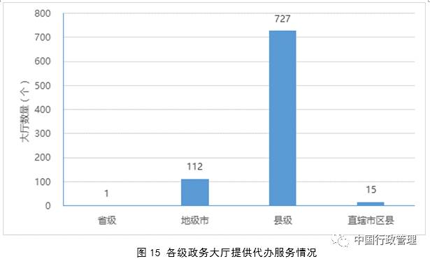 政务大厅是群众办事的主要渠道。近年来,各级政务大厅积极推进审批部门和事项全面进驻,努力推动群众关注度高、办理量大的服务事项进驻,不断拓展服务功能、提升办事效率,大部分实现了从单一审批向综合服务转变,已经成为当地群众办事的主要渠道。普查数据显示,2016年政务大厅总办件量6.02亿件,相当于每个大厅办理19.7万件,日均办理784件。从大厅年平均办件量来看,地级市大厅最高,达52.6万件,省级大厅次之,为40.4万件,直辖市区县大厅28.9万件,县级大厅14.7万件。目前,群众在政务大厅办件量远超过互联网平台,地级市86.9%的办件量发生在政务大厅,西部地区更是高达97%。