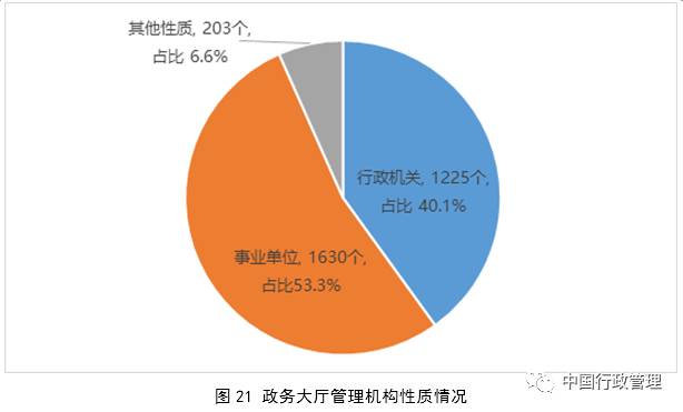 五是部门协调难。不少地方提出,由于缺乏充分的法律依据和授权,政务大厅对规范部门办事没有硬性约束手段,协调监督进驻事项的办理存在难度,推进综合窗口、并联审批等工作较为吃力,非试点地方难以推行“一个公章管审批”。还有地方提出,中办发2011年22号文件关于政务大厅管理机构应使用行政编制的要求没有落地,政务大厅履行集中审批服务管理难度大。普查发现,约50%的管理机构是事业单位,还有约10%尚未经编制部门批准。