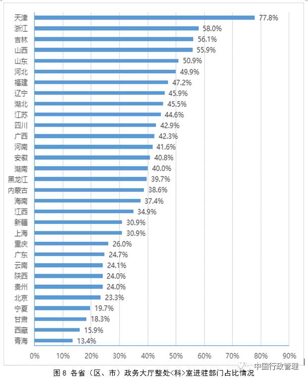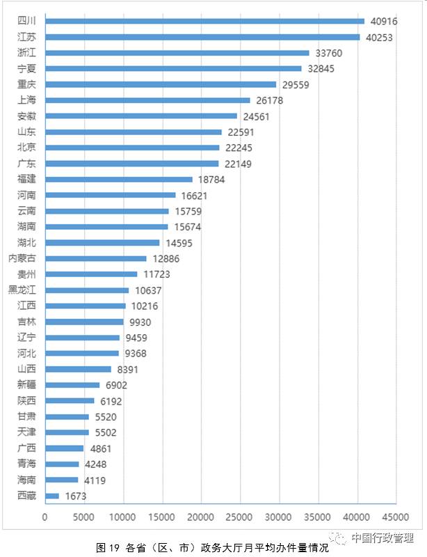 二是发展不平衡。从各省政务大厅平均进驻事项数方面看,前三位的省份是福建、贵州、浙江,进驻事项数均超过500项,后三位为西藏、青海、新疆,进驻事项数不足150项。其中,福建省平均进驻事项最多,为677项,西藏自治区最少,为40项。2016年四川、江苏、浙江、宁夏平均每个政务大厅月办件量超过3万件,广西、青海、海南、西藏不足5000件。从各地政务大厅部门进驻情况看,仅有6个省份政务大厅的审批部门进驻比例超过90%,13个省份在70%至80%之间,5个省份在60%至70%之间,3个省份在50%以下。
