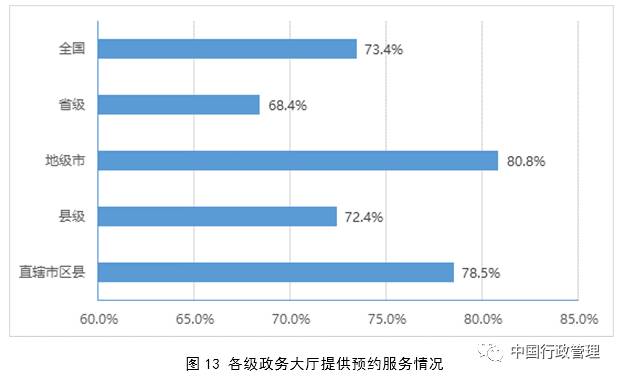 政务大厅服务网点实现全覆盖。截至2017年4月,全国县级以上地方各级人民政府共设立政务大厅3058个,覆盖率94.3%。其中,省级政务大厅19个(含新疆生产建设兵团),地级市政务大厅323个,县级政务大厅2623个,直辖市区县政务大厅93个。此外,乡镇(街道)共设立便民服务中心38513个,覆盖率96.8%;国务院部门共设立政务大厅42个。江西、广西、四川、贵州、云南、甘肃、宁夏7个省(区)已实现省、市、县三级政务大厅全覆盖。