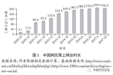 再以上网时长为例。网络上B2C的交易如购物、玩游戏、看视频、听音乐、社交媒体插入广告等,都需要消费者花费时间上网。因此,网民数量和人均上网时长是这类经济活动活跃程度和增长潜力的重要指标,两者构成上网总时长。最近几年,我国这几个指标增长趋缓,2017年网民上网总时长出现下降(参见图1)。这个变化提示,网络B2C交易的增速可能下降,需要寻找新的增长点和动力源。