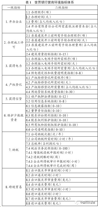 第一,从报告所使用的指标体系来看,似乎并不直接涉及政务公开。世界银行最新发布的《2019年营商环境报告》,选取了10个一级指标45个二级指标,以衡量各国的营商环境。具体如表1。